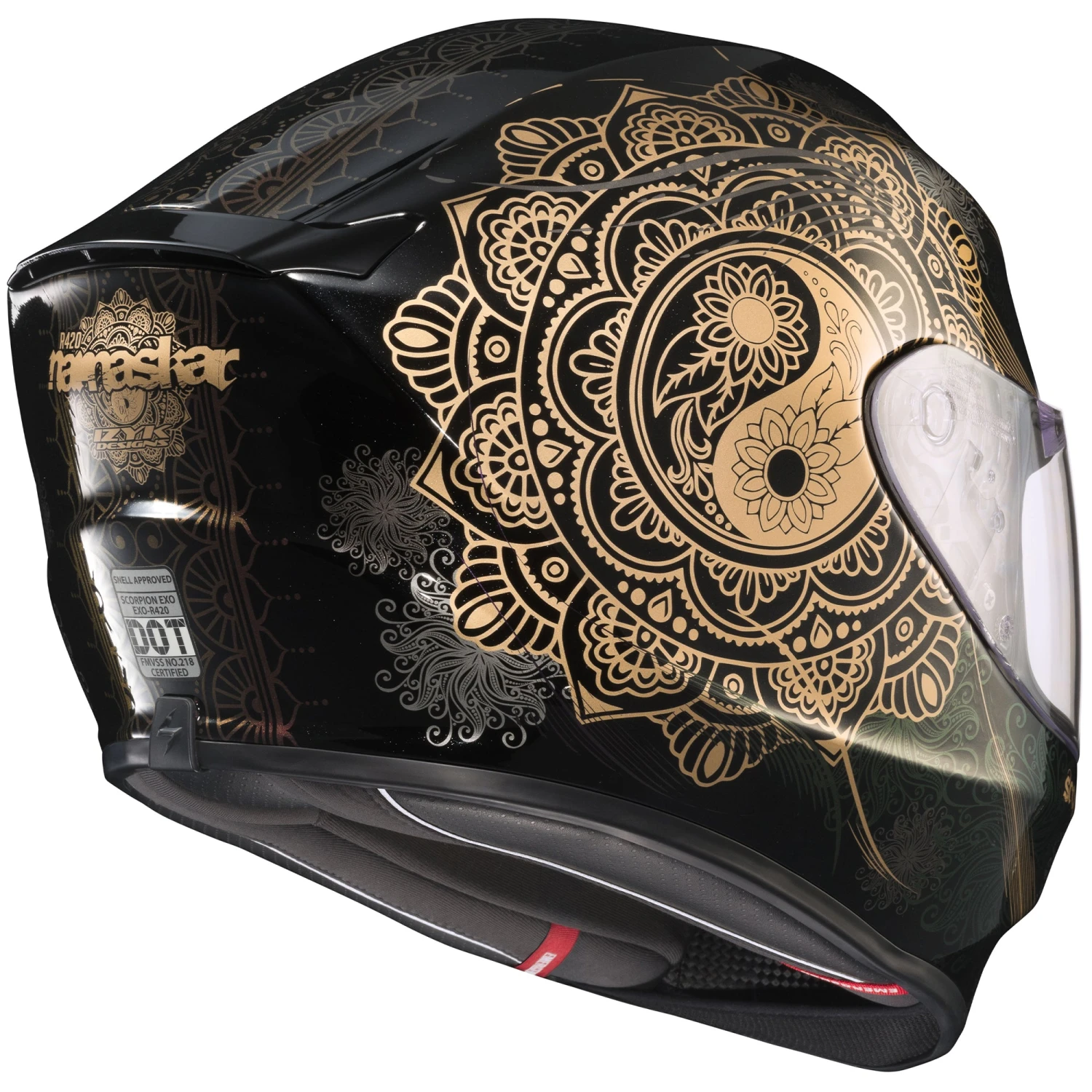 The EXO-R420 helmet continues to set a new standard for Scorpion EXO®’s full face street helmets at a very competitive price point. An all new advanced polycarbonate shell is more aerodynamic and smaller resulting in an ultra lightweight SNELL-approved helmet. The aero tuned ventilation system uses a large top vent and mouth vents engineered to allow more airflow to the riders head while maintaining low noise levels. The EXO-R420 now features our new Elliptec™ II faceshield with a latching shield locking mechanism located in the lower center of the shield. This makes the faceshield more secure and provides a tighter seal against the gasket. The faceshield can easily be removed without tools, and the EverClear® No-Fog coating helps keep your vision clear in cold and damp environmental conditions. The KwikWick® II comfort liner is moisture wicking, quick drying and can be easily removed and is machine washable.
