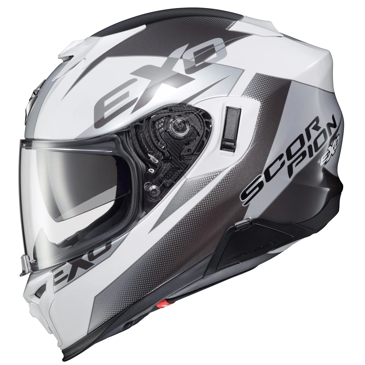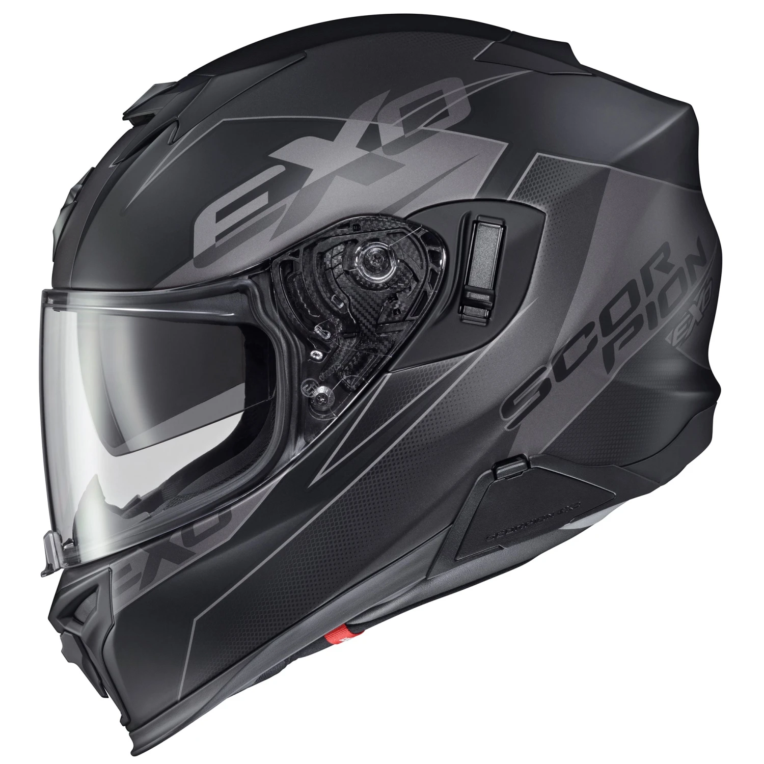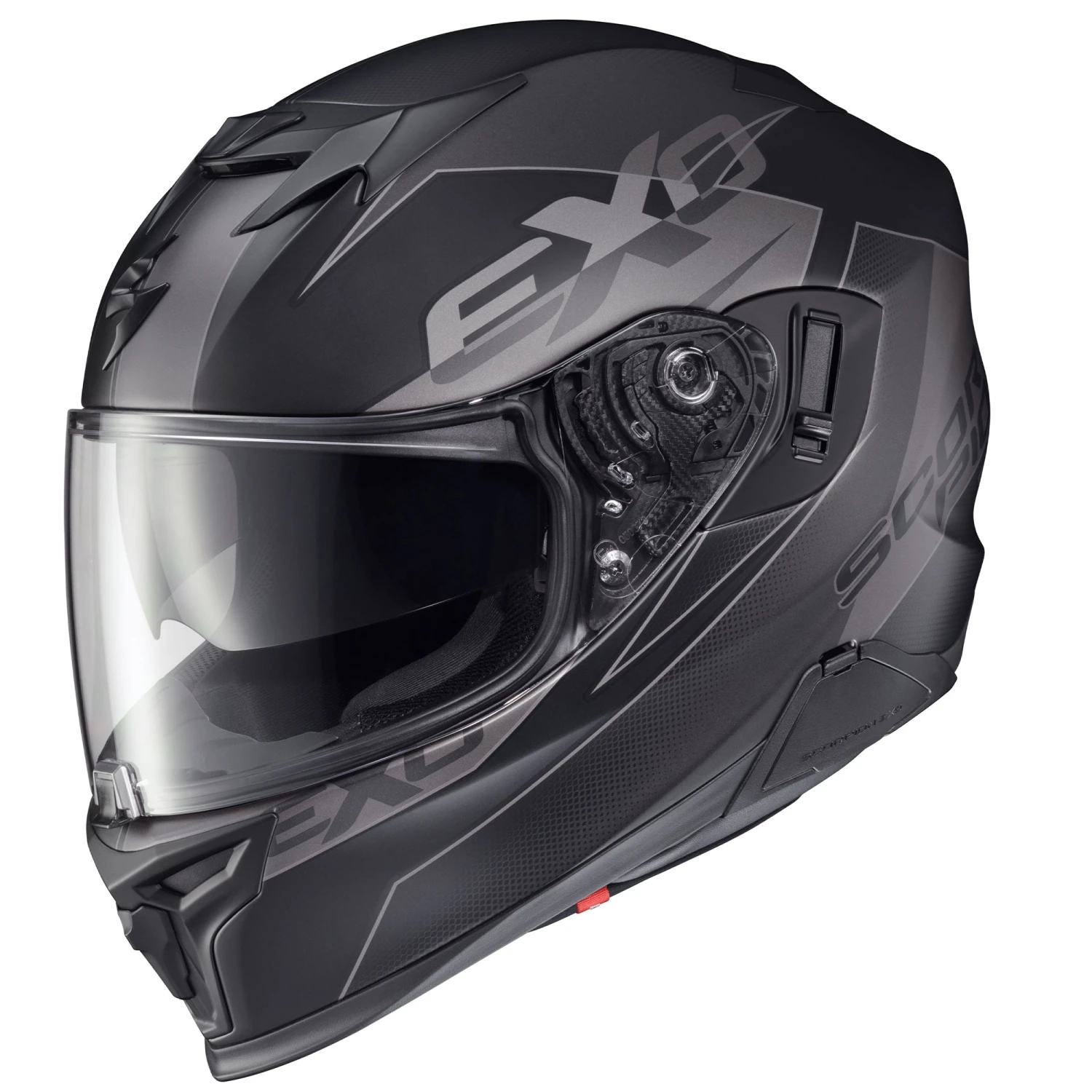 - Ellip-Tec™ II Ratchet System: ScorpionEXO’s ratchet system uses an elliptical motion that pulls the shield securely against the eye port, ensuring a proper seal. The Ellip-Tec ratchet system allows for 100% tool-less shield changing in a matter of seconds